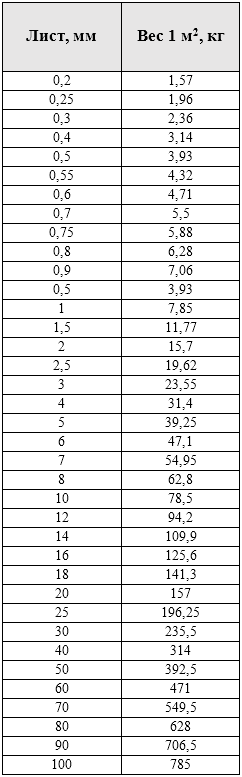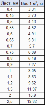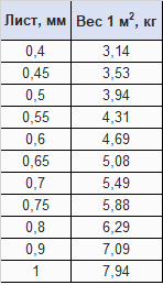 Вес листа оцинкованного и оцинкованного с полимерным покрытием