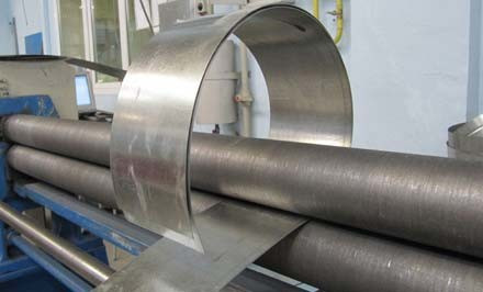 3. 3-х валкова листогибочная машина залишає кінці заготовки прямими, таким чином, слід заздалегідь здійснювати їх підгин, наприклад за допомогою преса. Довжина прямої ділянки кінця заготовки дорівнює половині відстані між роликами, які знаходяться знизу.