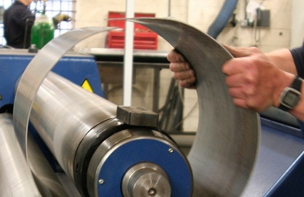 4. В той момент часу, коли починається рух валу, що знаходиться посередині, в перерізі заготовки починає зростати значення нормальних напружень, в наслідок чого відбуваються пружинні деформації. Далі напруги в різних волокнах перерізу досягають межі плинності матеріалу, що призводить до походженням пластичної деформації, а отже, відбувається безпосередня гибочна операція. Відводячи вал, що знаходиться посередині вальців для листового металу, назад вгору до того моменту, поки не почалася пластична деформація, ми побачимо, що виріб пружинить навздогін і зберігає власне споконвічне пряме положення. У слідстві цього ефекту, внаслідок того, що частини заготовки пружинять і частково розпрямляються після виходу з області згинання, можна збільшити значення вертикальної подачі. Розрахунок наведено в статті - Розрахунок радіуса згинання для 3-х валкового згинального верстата.. Величину зворотного пружинения або залишкової кривизни підрахувати досить важко. Для вирішення виниклої проблеми, крім числа межі текучості, знадобиться число моменту опору згину поперечного перерізу заготовки. Підрахунок даної величини є тяжким завданням, так як профілі з матеріалів, з різними складами, володіють складно сформованим поперечним перерізом. Так само складність полягає в постійно коливається величиною межі текучості , яка різниться навіть у зразків, взятих з одного матеріалу.