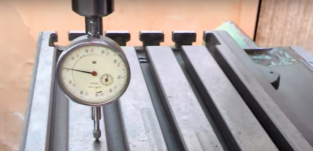 Для цього потрібно вставити індикатор у цанговий патрон та провести по столу вздовж і впоперек. Якщо відхилення мінімальні – напрямна знаходиться в нормальному стані. Якщо ж відхилення великі, то виводити це досить складно – краще відмовитися від такого верстата.